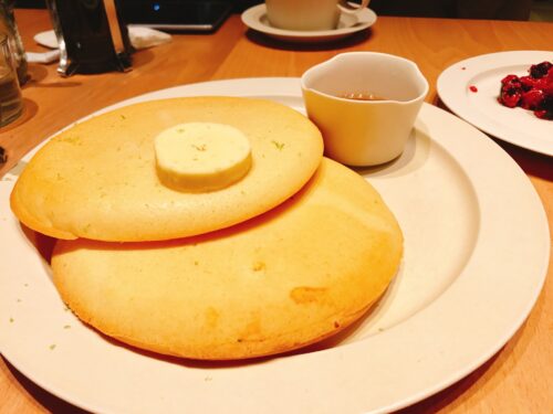 米粉のパンケーキは、ふんわりとした食感で小麦のものと変わりません。シロップをかけず、そのまま食べても美味しく食べられます。