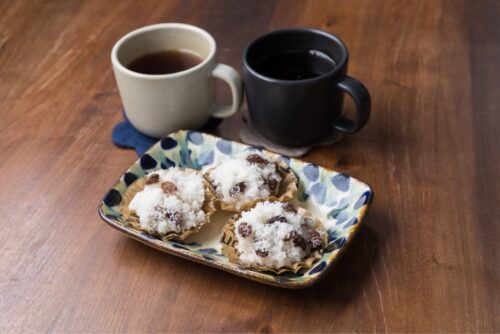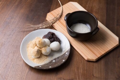- きな粉やあんこをお好みでそえます。