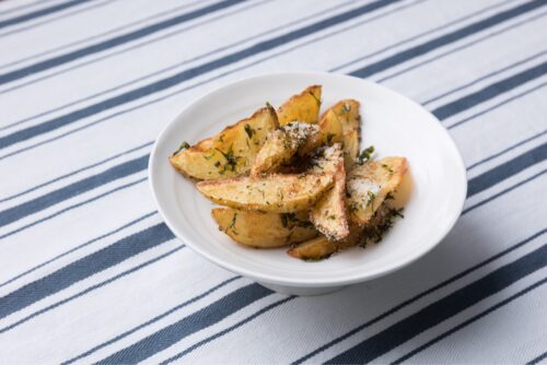 - 170℃の油で色よく揚げ、仕上げに塩をかけて完成です。